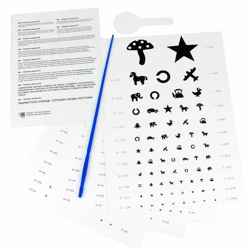 - Кроме таблиц в комплектацию входят небольшая пластиковая указка и окклюдер.