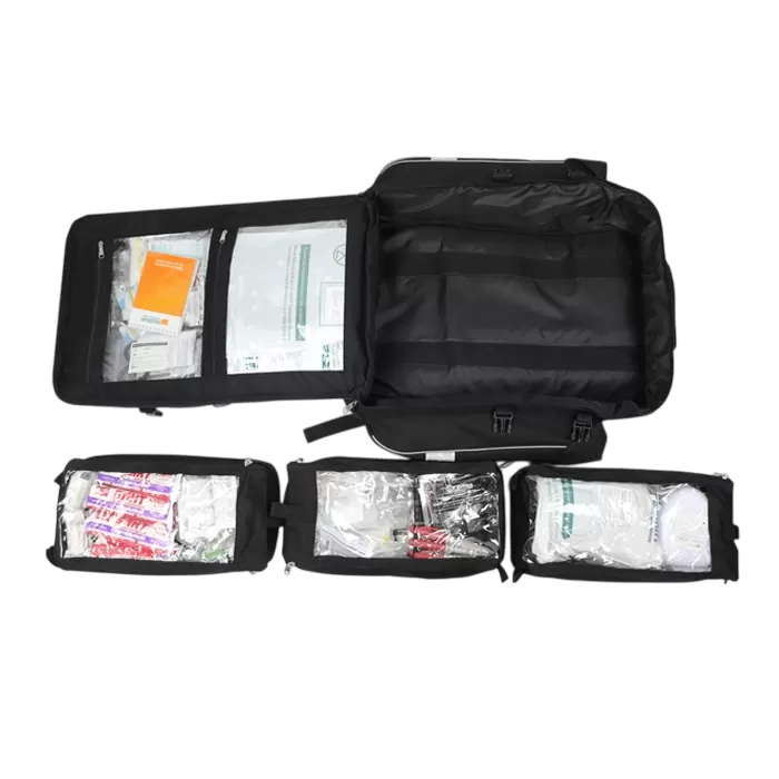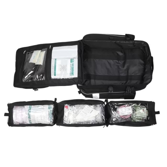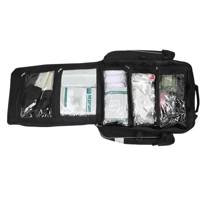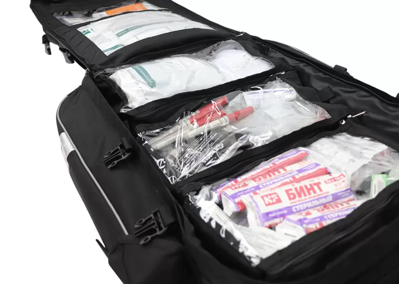 - Аптечка представляет собой комплект изделий, позволяющий оказывать первую помощь, и поставляется в рюкзаке универсальном РМУ-02.