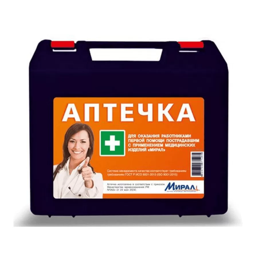 Аптечка Мирал для оказания работниками первой помощи по Приказу 262н от 24.05.2024г., пластиковый футляр.