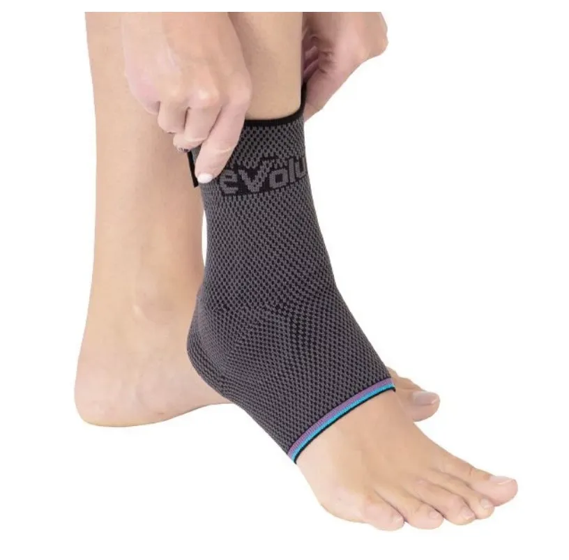 - Вывернуть верхнюю часть бандажа наружу, до силиконовых пелотов. Взять бандаж за середину, натянуть на стопу как носок. Силиконовые пелоты должны окружать лодыжки. Развернуть верхнюю часть бандажа, подтянуть и расправить его.