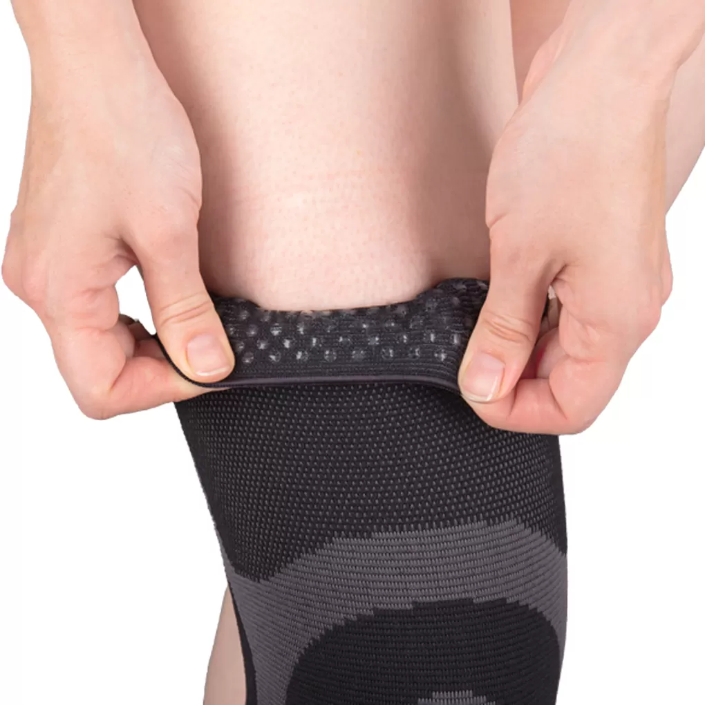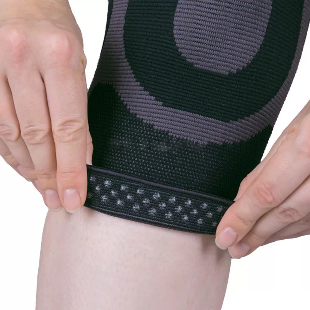 - благодаря силиконовому покрытию, даже при интенсивных занятиях спортом, бандаж не смещается, не сползает и максимально оказывает терапевтическое воздействие