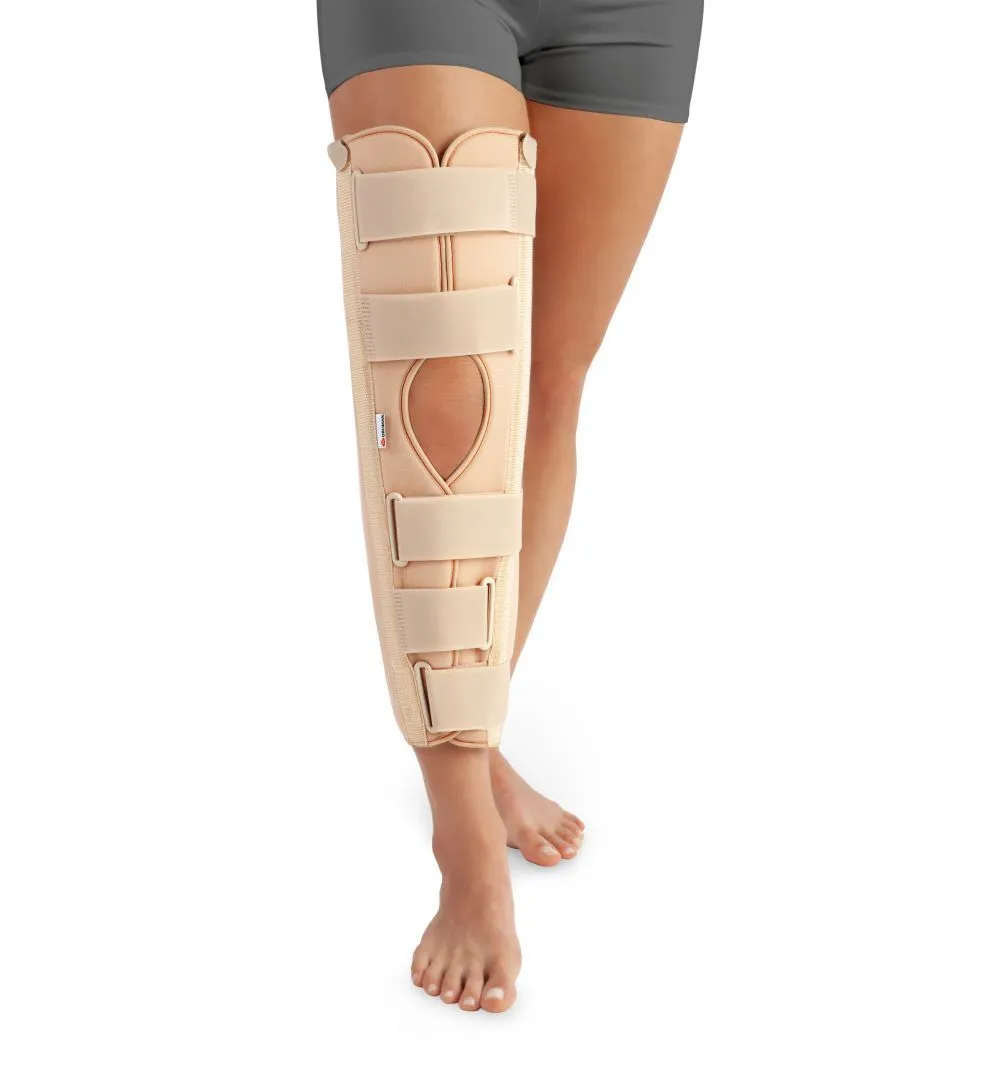 - Тутор имеет 4 жесткие металлические шины для иммобилизации коленного сустава.