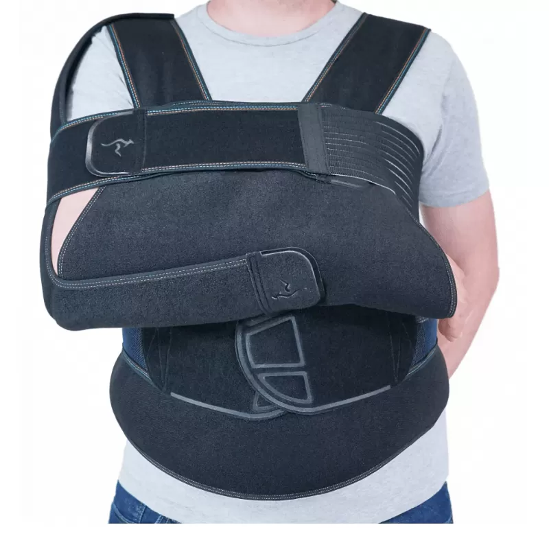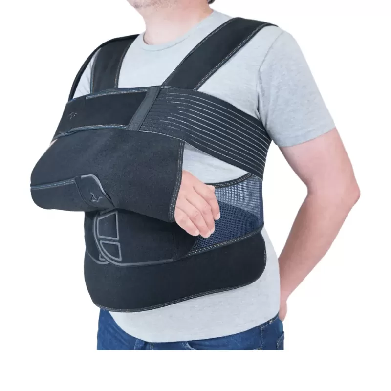 - фиксирует суставы плечевого пояса в функционально-выгодном положении: плечевой, грудинно-ключичный, ключично-акромиальный суставы;