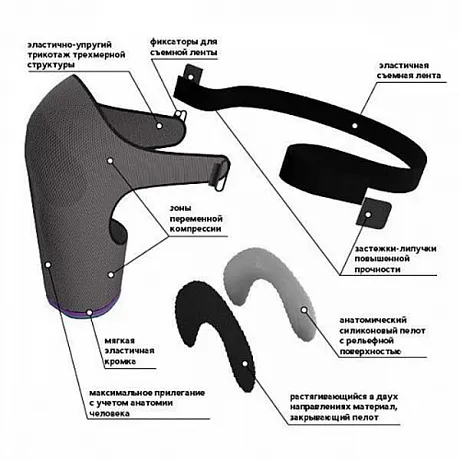 - силиконовый пелот анатомической формы с рельефной поверхностью создает дополнительную компрессию, оказывает массажное воздействие на мягкие ткани