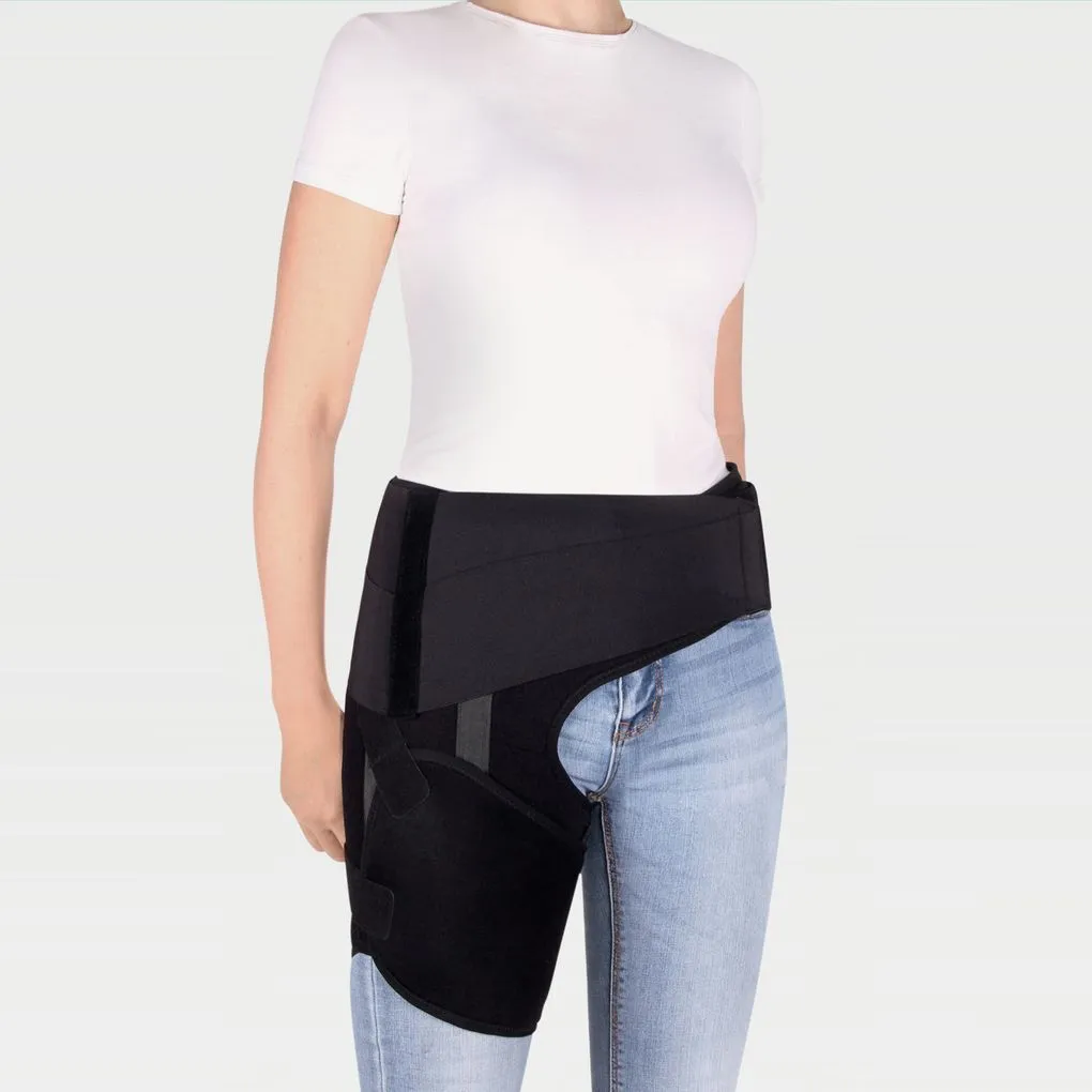 - бандаж обеспечивает поддержку, снимает нагрузку с мышц тазобедренного сустава, надежно защищает его, способствует уменьшению отеков за счет мягкой компрессии.