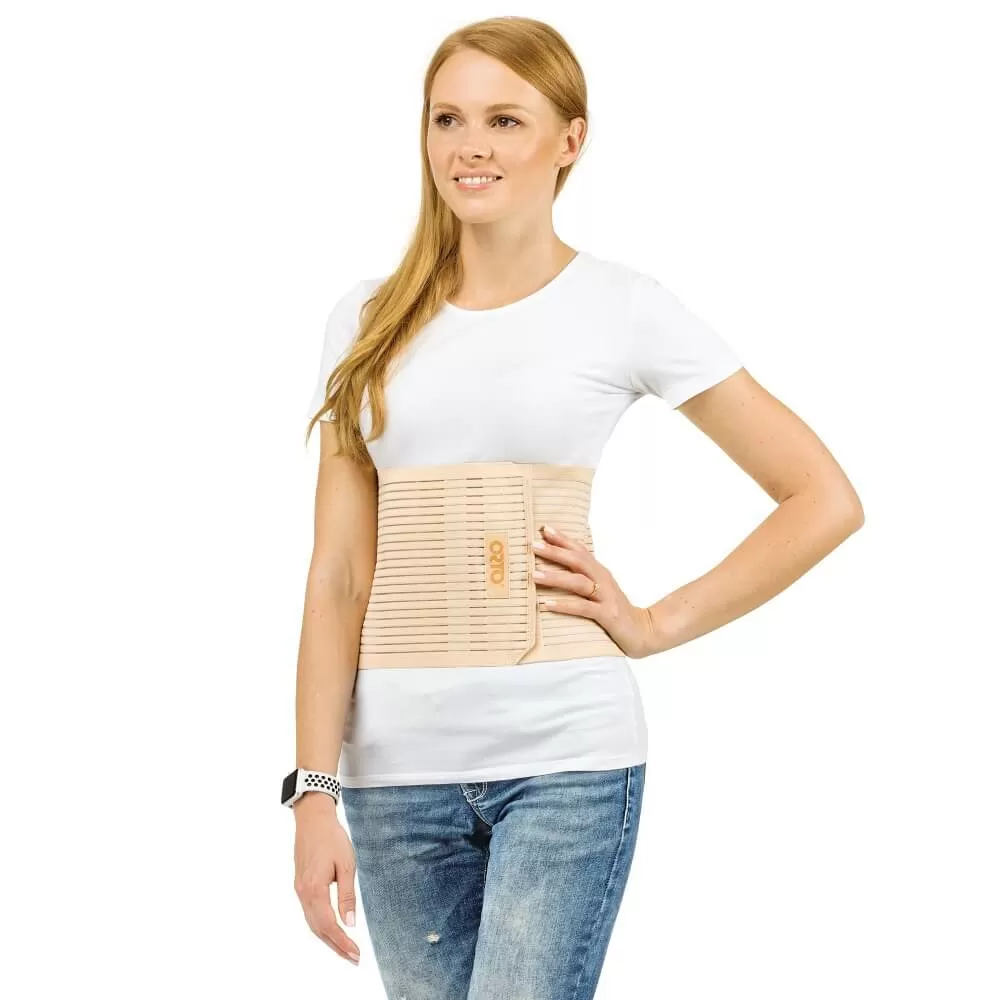 Абдоминальный ортез с разъемной основой из эластичного материала, форма которого адаптирована под женский тип фигуры (нижний объемный размер больше верхнего). Разработан по технологии AirPlus: основа изделия изготовлена из эластичного материала разреженной вязки, застежка «Велкро» имеет дискретную конструкцию, гибкие планшетки предотвращают скручивание. Высота бандажа ― 24 см.
