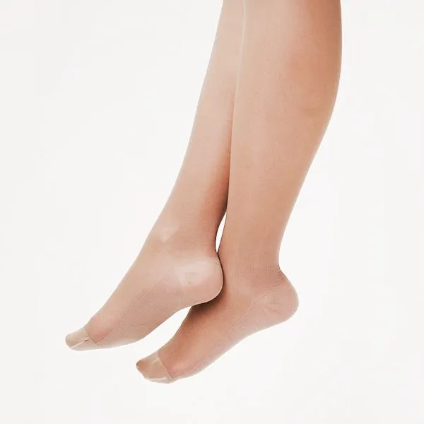 - Надеть изделие на стопу, убедитесь, что пятка чулка правильно расположена на ноге