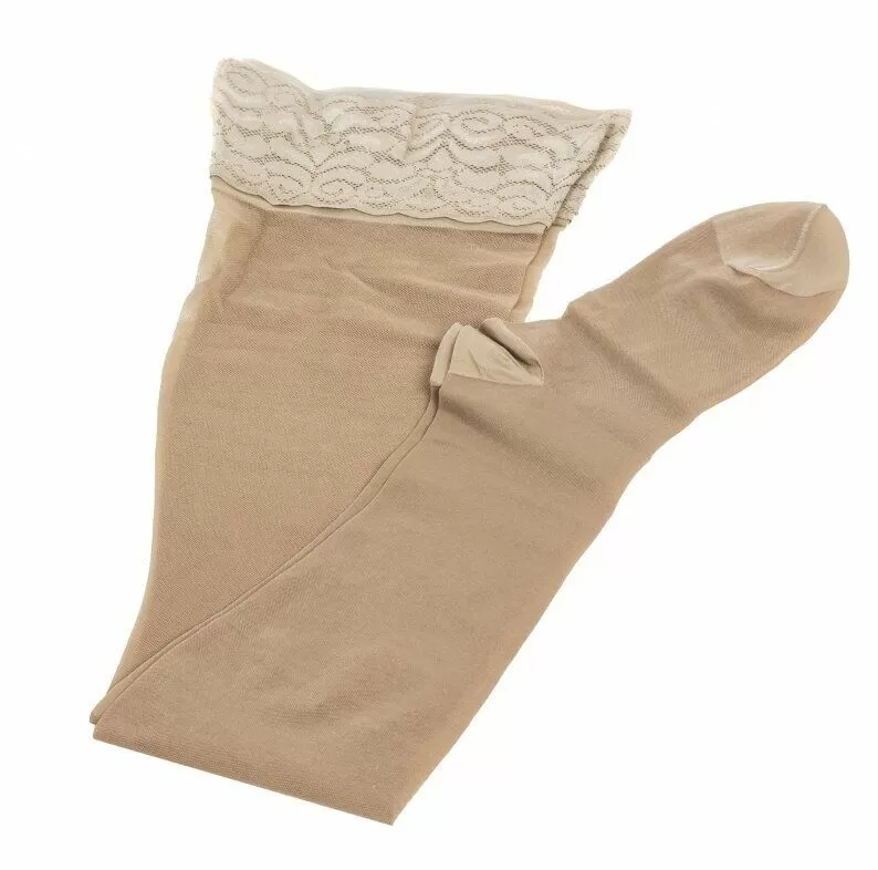- Антиварикозный трикотаж 2 класса компрессии, обладает компрессионным воздействием на подлежащие мягкие ткани (23-32 мм ртутного столба).