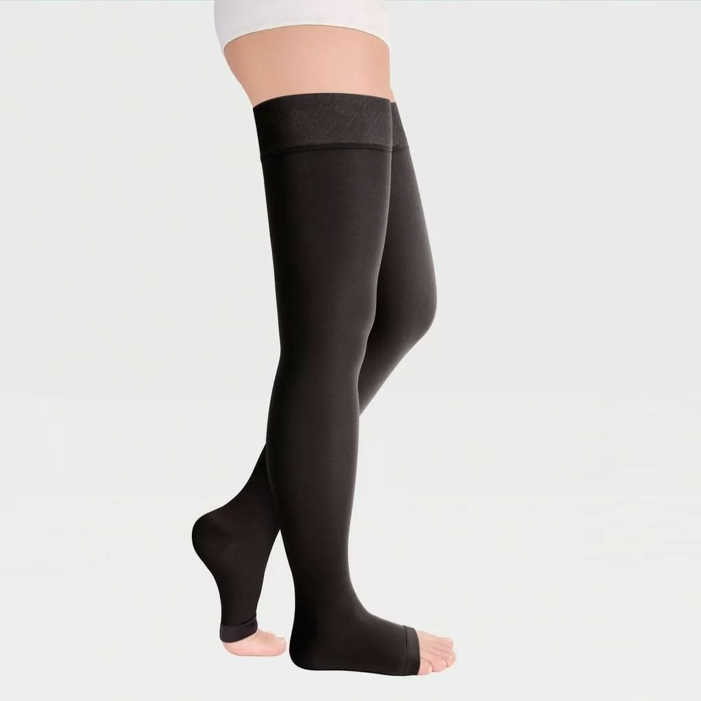 - резинка на силиконовой основе, в том числе на широкое бедро, мягко фиксирует чулок , не нарушая кровотока