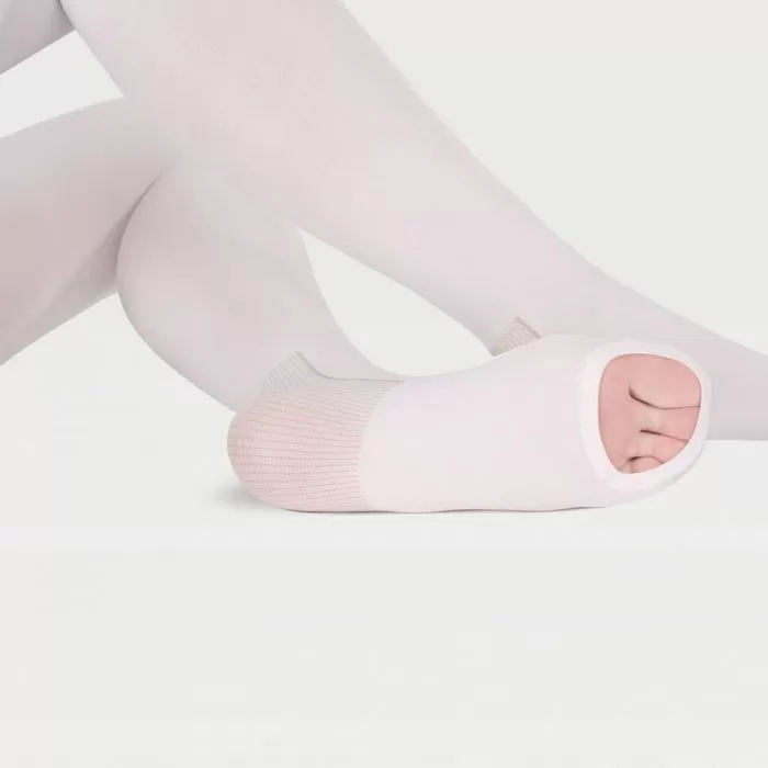 - Подтянуть за пяточную часть изделия, совместить её с пяткой ноги, зафиксировать в таком положении.