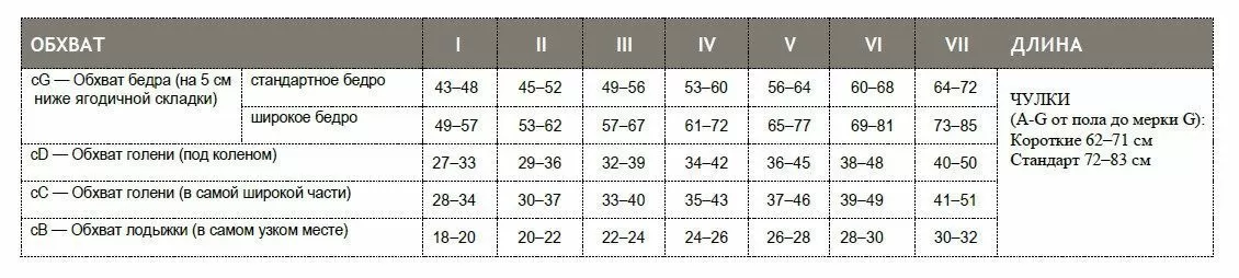 cG – обхват бедра (на 5 см ниже ягодичной складки), см |