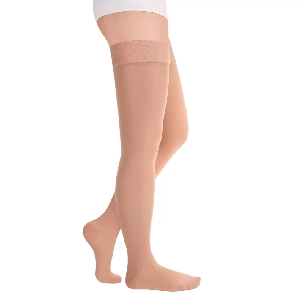 - резинка на силиконовой основе, в том числе на широкое бедро, мягко фиксирует чулок, не нарушая кровотока