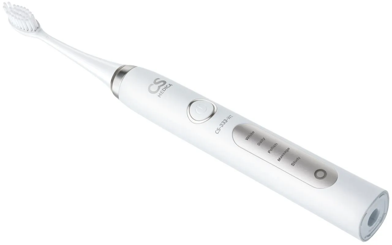 Стильная электрическая звуковая зубная щетка CS Medica. Элегантный лаконичный дизайн, приятная поверхность рукоятки Soft touch, бесконтактное зарядное устройство, Led-подсветка режимов на рукоятке.
