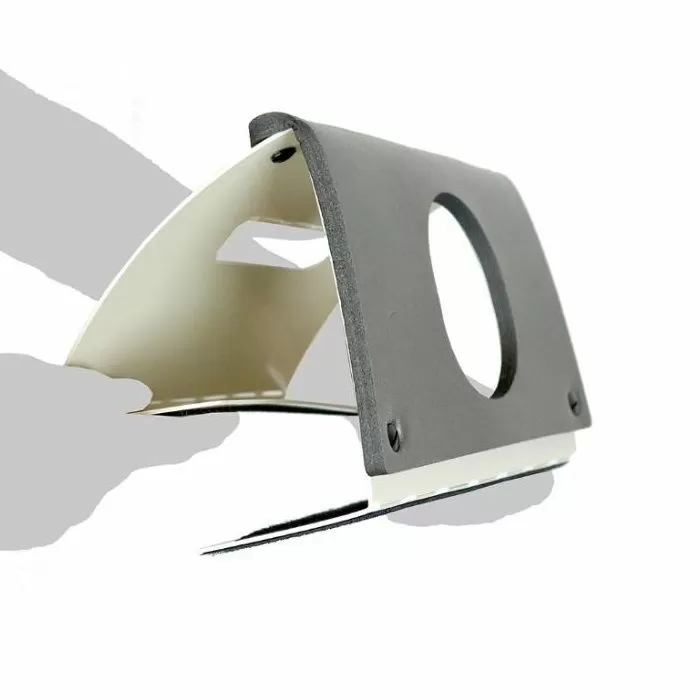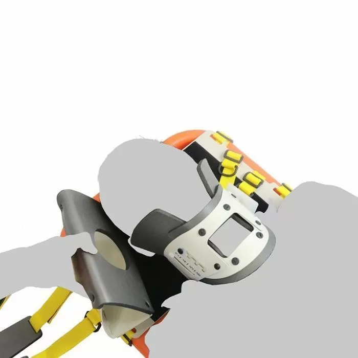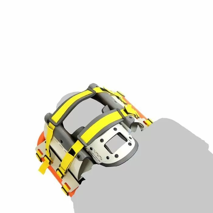 - Фиксатор состоит из основания, которое крепится к спинальному щиту с помощью застежки типа «велкро», 2-х фиксирующих ремней, 2-х боковых опор с прорезями для ушей, ремней для фиксации лба и подбородка пациента