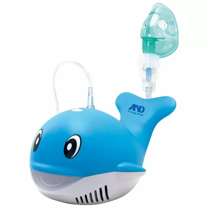 - Забавный дизайн компрессора в форме кита понравится малышам и позволит превратить процедуру ингаляции в увлекательную игру
