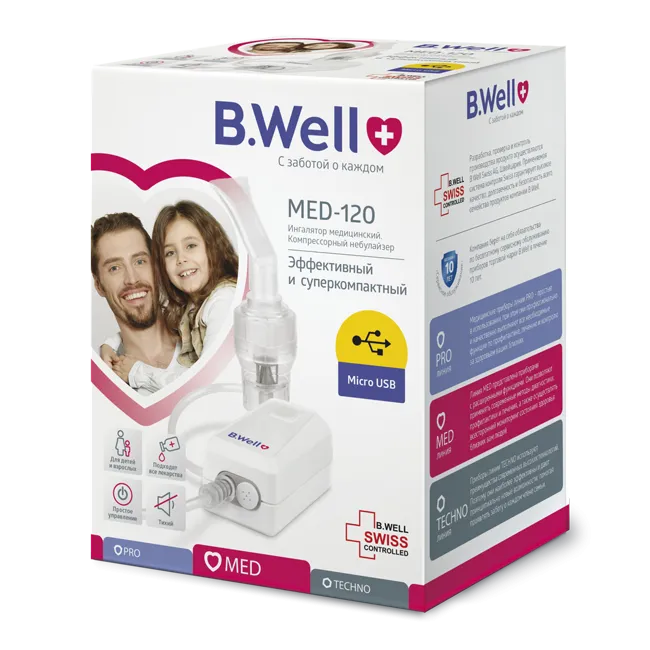 - Эффективный, компактный и тихий компрессорный небулайзер B.Well MED-120 — это правильный выбор для здоровья Ваших близких.