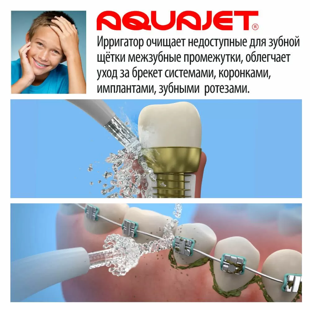 - Ирригатор эффективно очищает межзубное пространство и зубодесневые складки.