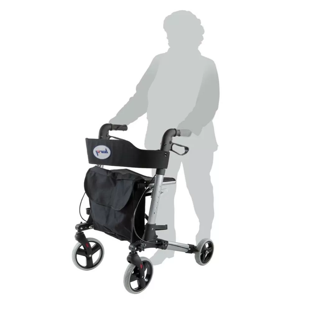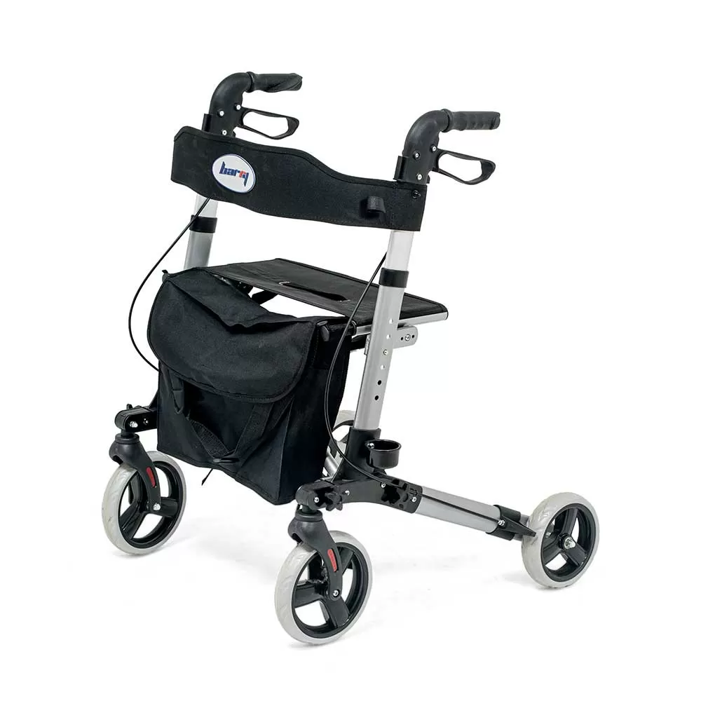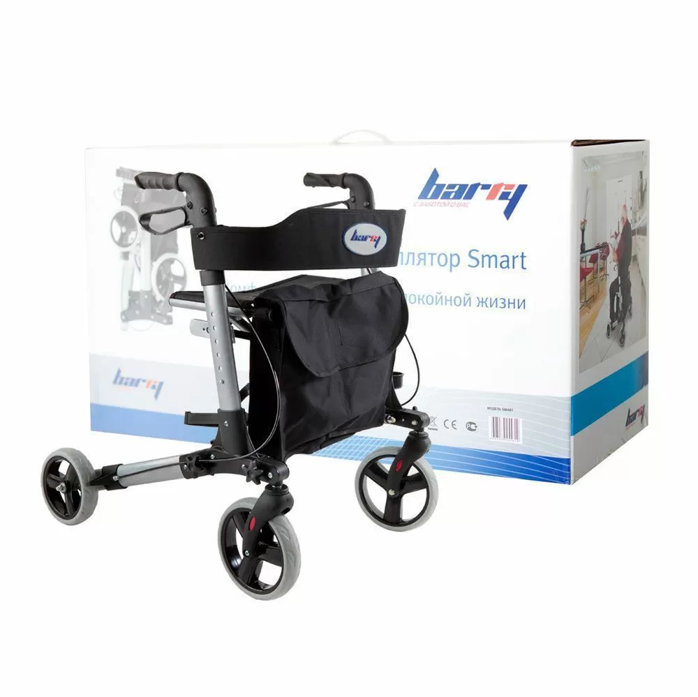 Ролятор Barry Smart это лучшая на сегодняшний день альтернатива опорам-ходункам. Модель оснащена четырьмя колесами с ручными тормозами и удобным сиденьем. Такой ролятор можно использовать как опоры-ходунки с возможностью блокировки колес, а в удобном сиденье из нейлона всегда можно отдохнуть во время прогулки. Ролятор Smart очень компактный, в сложенном виде он занимает мало места. Такие ходунки удобно хранить дома, а также брать с собой на прогулку или в дорогу. Модель оснащена держателем для тростей и костылей, и сумкой, которая фиксируется на раме при помощи специальных застежек.