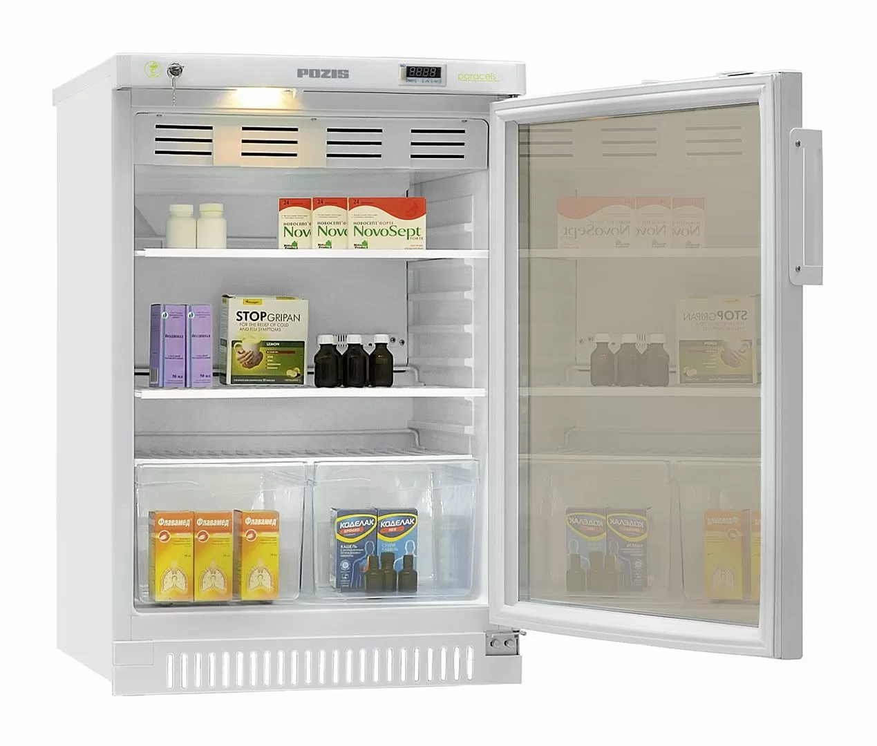 Микропроцессорный регулятор температуры со сверхчувствительным датчиком температуры; система принудительной циркуляции воздуха; дверь стеклянная с замком; автоматическое поддержание температуры в камере; сигнализация при отклонении температуры от заданной; отображение температуры на табло панели управления; отключение вентилятора при открывании двери, пластиковые контейнеры для фарм.препаратов - 2 шт. Предназначен для хранения лекарственных препаратов при температуре от +2°C до +15°C в помещениях в помещениях с температурой от +10°C до +35°C (клиники, больницы, аптеки, лаборатории, ветеринарные учреждения).