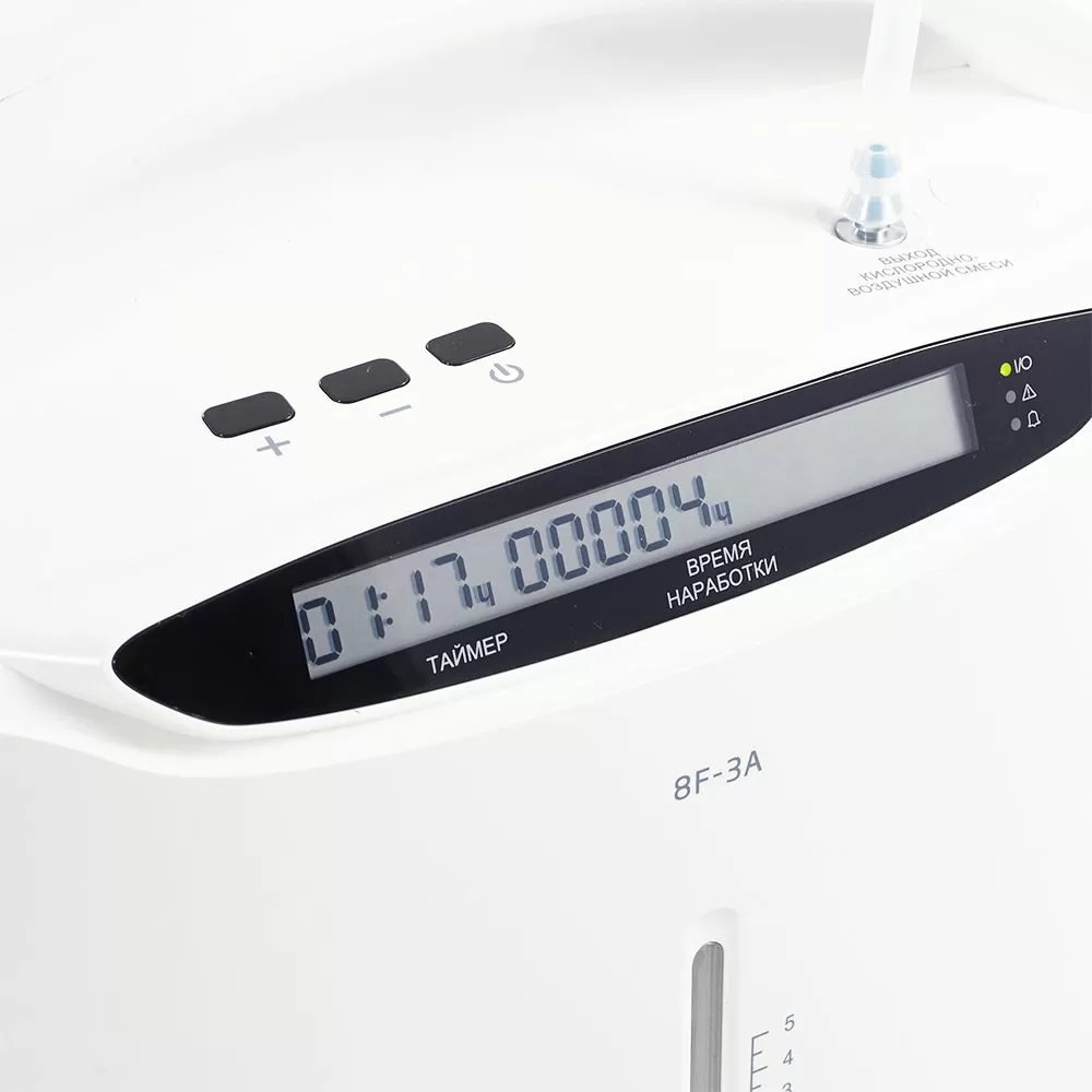 - Пульт дистанционного управления сделает использование прибора удобнее – концентратором можно управлять с расстояния до 5 метров. Главная информация о работе прибора отражается на ЖК-дисплее.