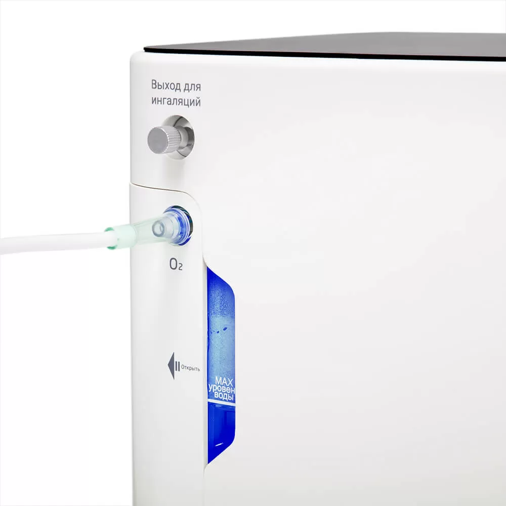- Концентратор не нуждается в сложном обслуживании — достаточно заменять воду в увлажнителе после каждого сеанса и раз в полгода промывать фильтр.