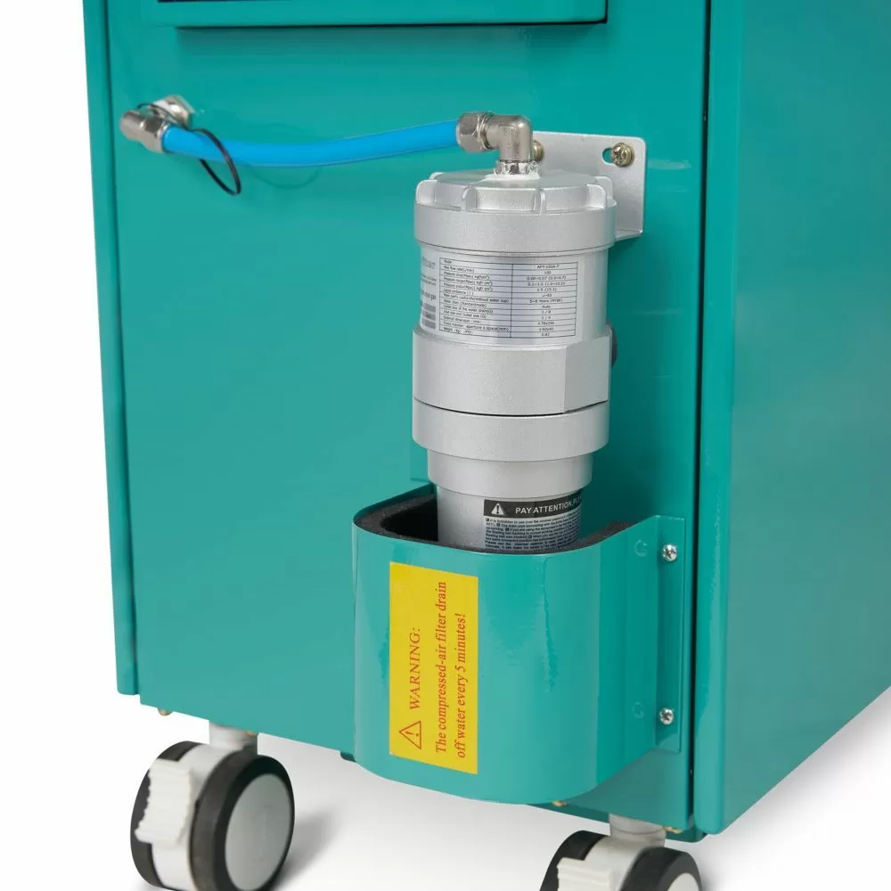 - Для удобного перемещения между помещениями прибор оснащен колесиками с фиксаторами положения.