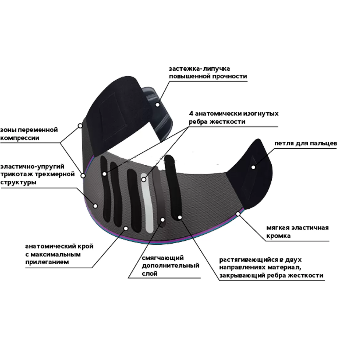- прочные износостойкие застежки со специальными петлями под пальцы для облегчения надевания