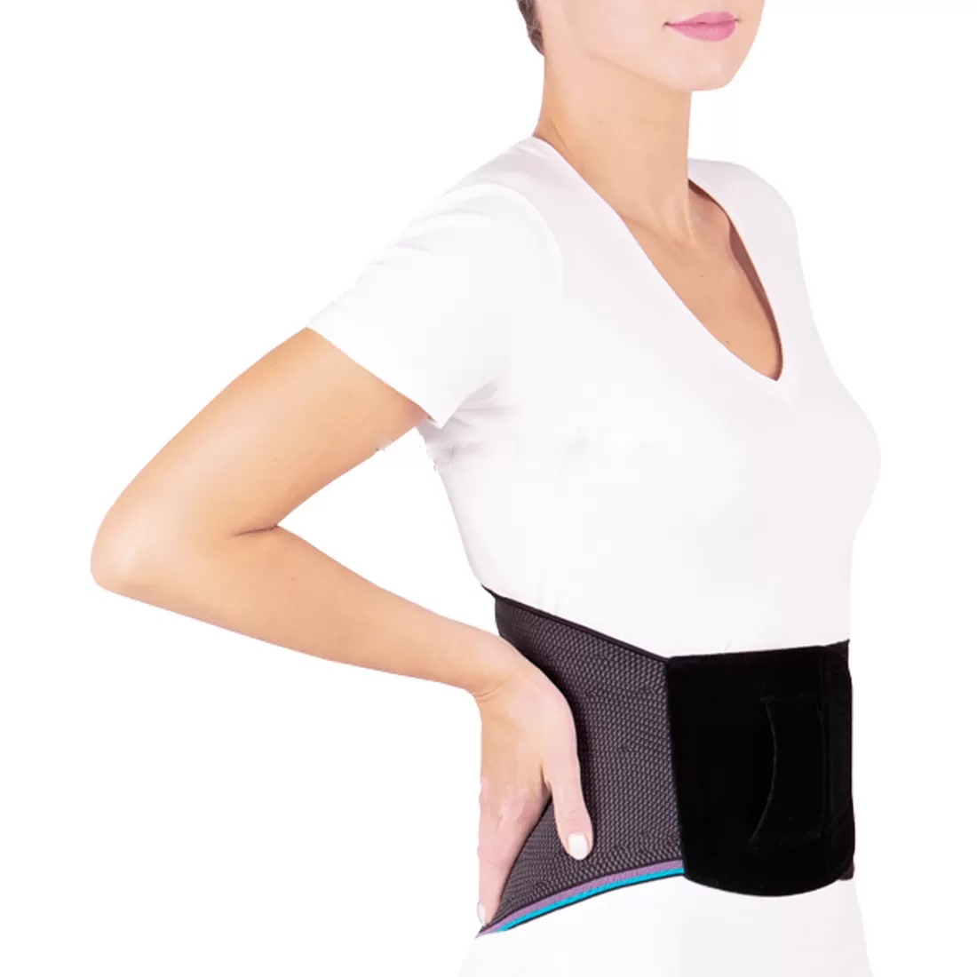 - анатомический крой и зоны переменной компрессии обеспечивают плотное облегание пояснично-крестцового отдела позвоночника, правильно распределяя давление, без пережатия сосудов