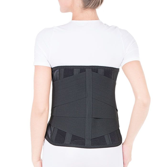 - эластичный материал корсета, 4 моделируемые ребра жесткости и тройная дополнительная стяжка позволяют создать регулируемое давление, что посредством разгрузки мышц поясницы и сжатия брюшной полости приводит к купированию болевого синдрома