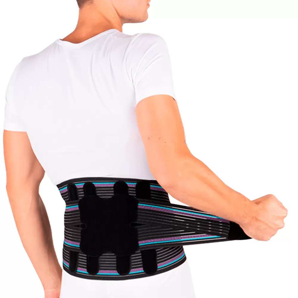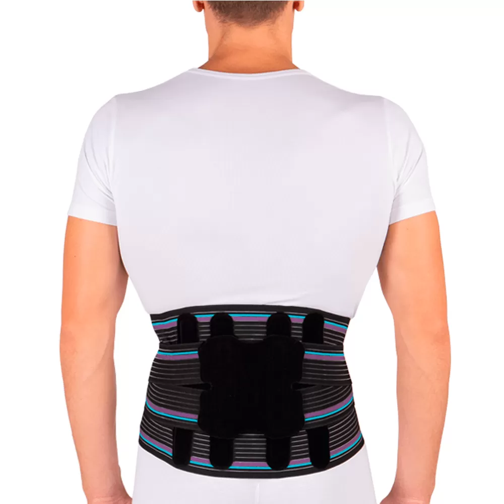- в поясничной области корсет снабжен съемным полиуретановым пелотом, который обеспечивает высокую стабилизацию и оптимально распределенную компрессию для уменьшения боли и поддержки позвоночника в правильном положении
