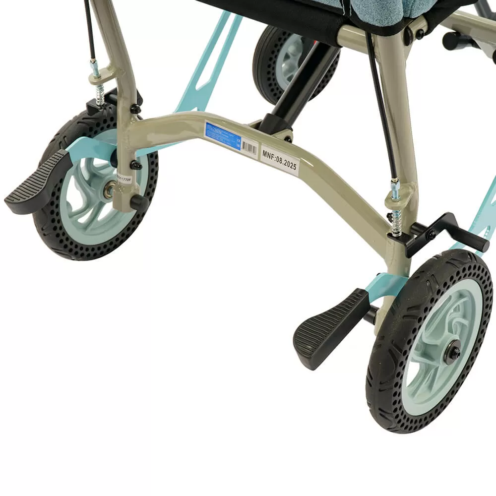 - Практичность: откидные подлокотники и подножки, объединенная тормозная система, складная спинка.