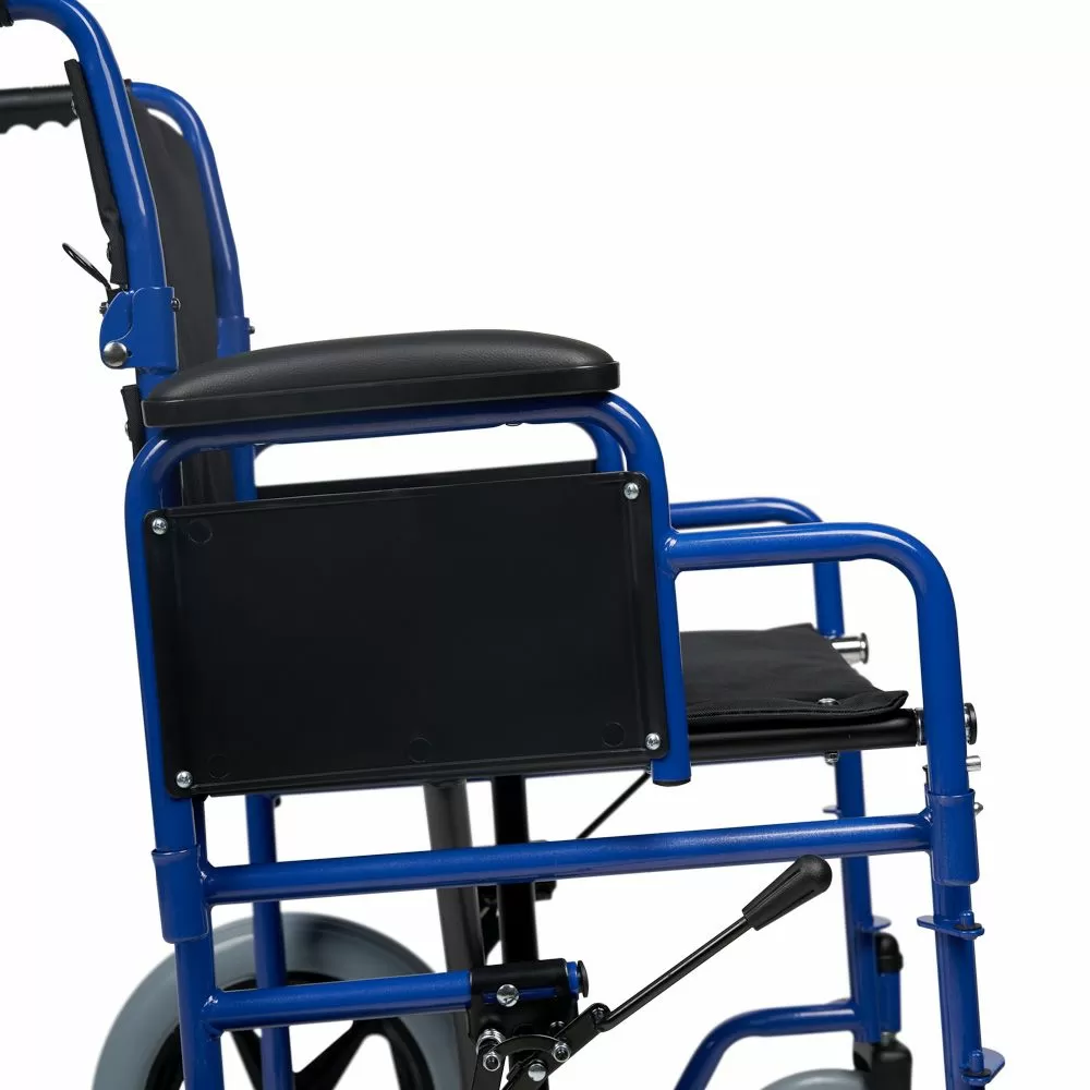 - Надежные стояночные тормоза по обе стороны кресла зафиксируют положение колес во время остановки.