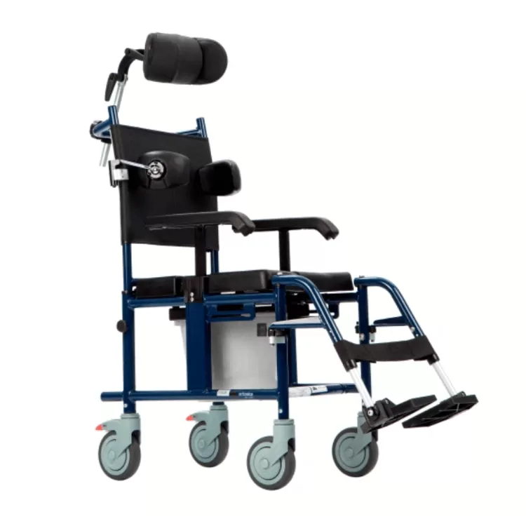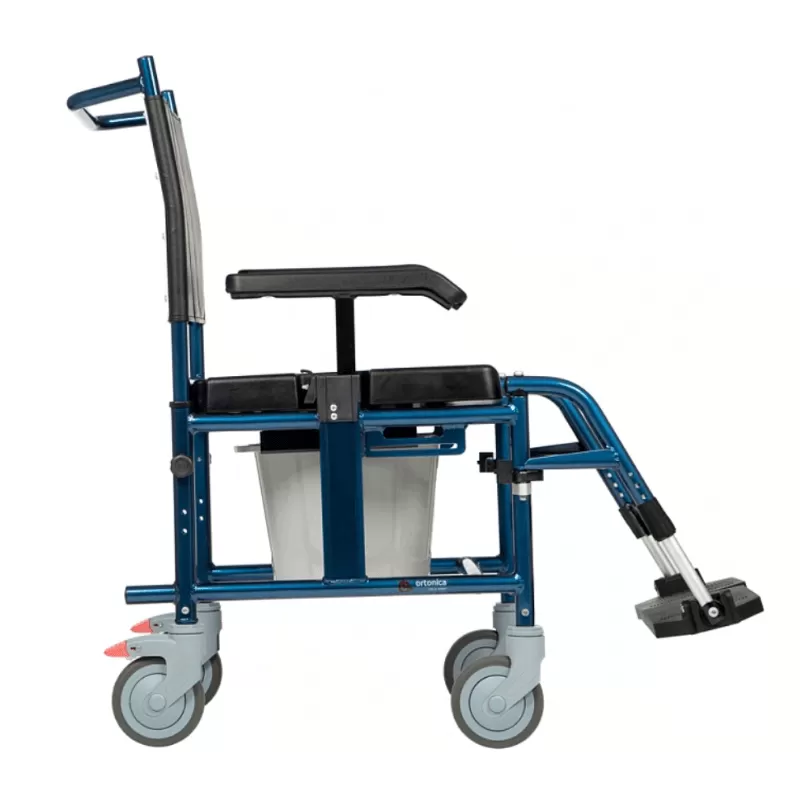 Оснащен цельнолитыми колесами, с помощью которых стул удобно перемещать с помощью сопровождающего лица. Для безопасной остановки предусмотрены 2 стояночных тормоза на задних колесах.