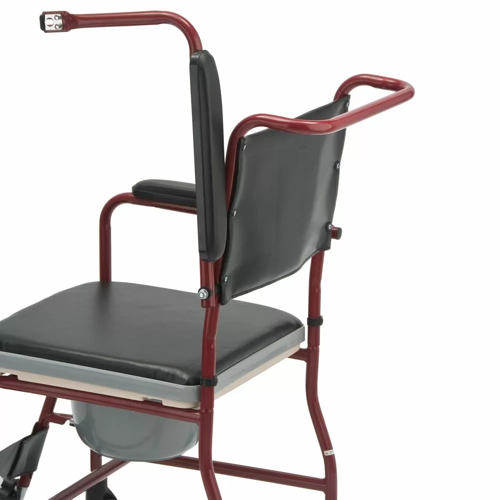 Удобное сиденье и спинка из кожзама, легко устанавливать над унитазом; Откидные подлокотники |