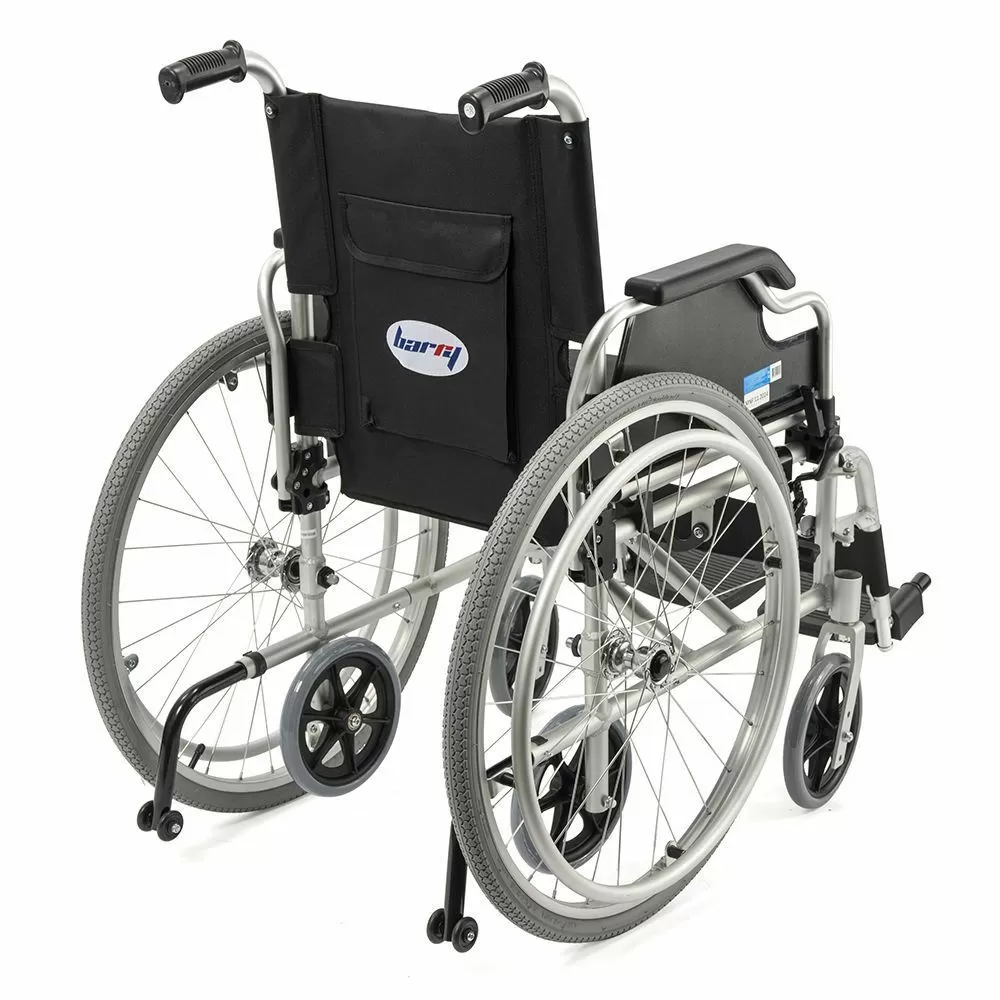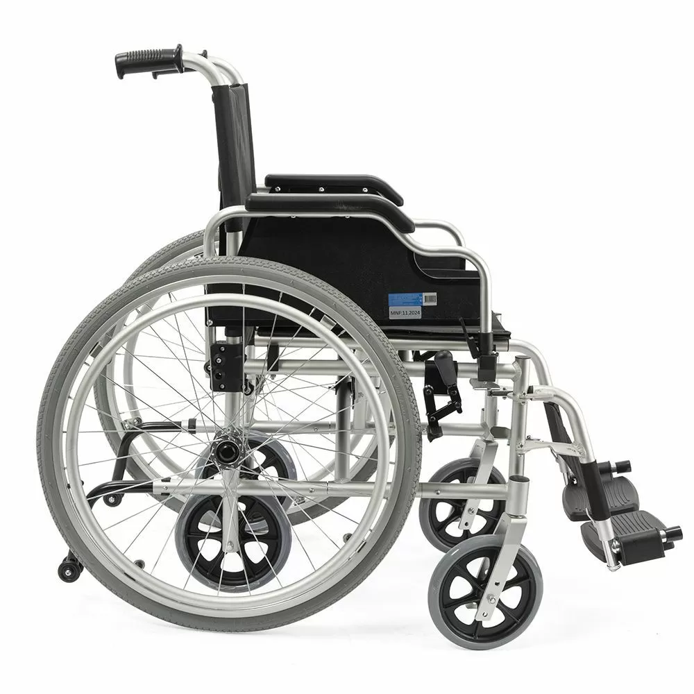 Легкая складная алюминиевая коляска с откидными подлокотниками и съемными подножками – отличный прогулочный вариант, предназначенный как для самостоятельного передвижения, так и для передвижения с помощью сопровождающего лица. Коляска идеально подходит для использования как в помещении, так и на улице. Коляска оснащена задними быстросъемными пневматическими колесами и передними литыми. Спинка фиксированная, материал обивки сиденья и спинки – практичный, надежный и удобный в использовании нейлон.