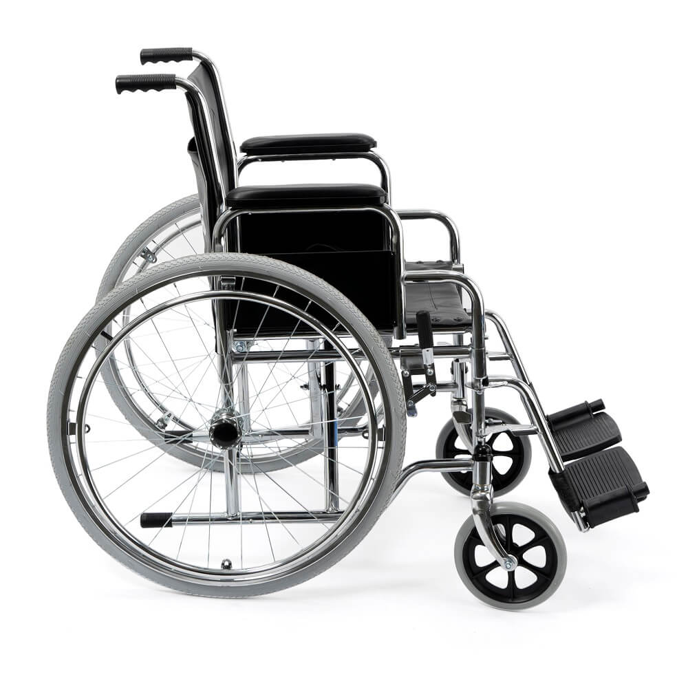 Коляска Barry B5 отлично подходит для улицы и дома: пневматические шины обеспечивают плавный ход при движении по неровной дороге, а компактные размеры помогают маневрировать в небольших помещениях. Кроме того съемные подлокотники и подножки упрощают пересаживание из коляски на кровать или стул.