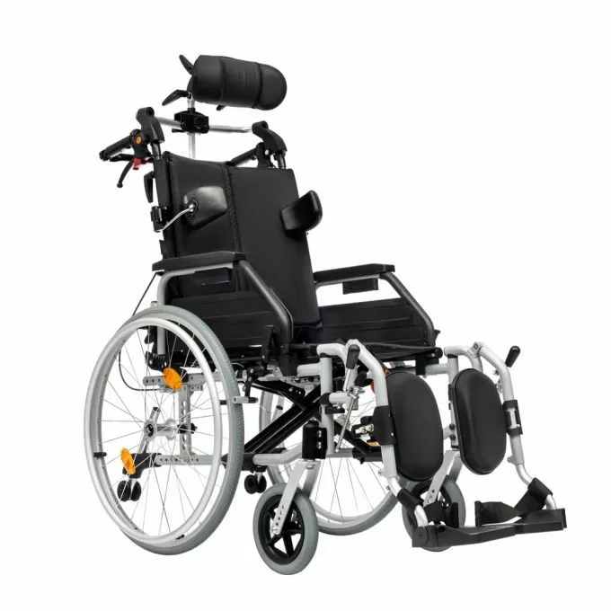 Кресло-коляска для инвалидов Ortonica Delux 540 подходит для комфортного использования за счет системы регулировки угла наклона спинки и подножек.