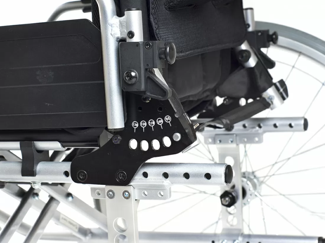 - Задние колеса быстросъемные, с кнопочной фиксацией, регулируются по вертикали в 6 положениях и горизонтали в 4 положениях
