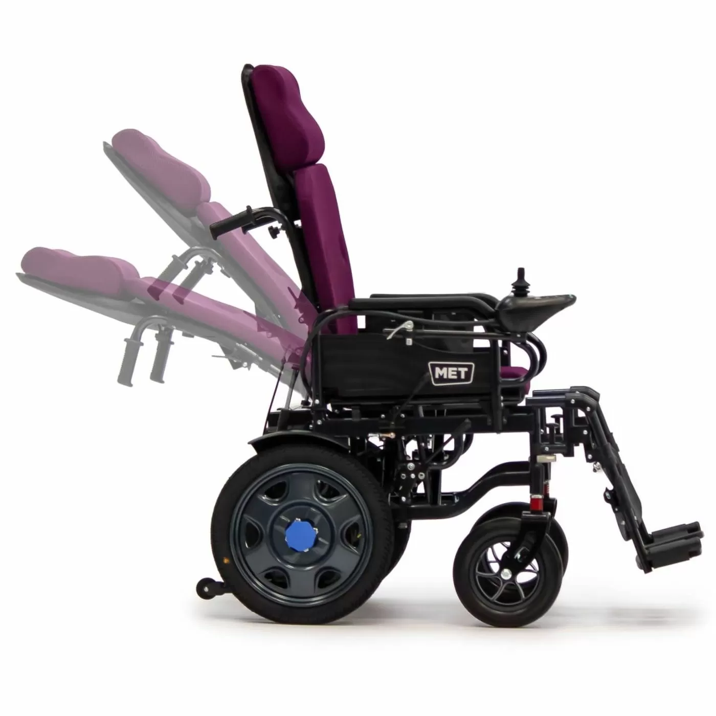 Коляска MET COMFORT 110 имеет механизм, который защищает кресло от опрокидывания и обеспечивает максимальную безопасность пользователю. Спинку кресла можно откинуть назад для большего комфорта, также можно поднять подножки, чтобы принять горизонтальное положение. Контроллер можно разместить как слева, так и справа от пользователя. На нём есть кнопки для подачи звукового сигнала, переключения скоростей, а также функции SOS и отключения звука. Управление движением осуществляется с помощью джойстика.Проходимость и ходовые качества