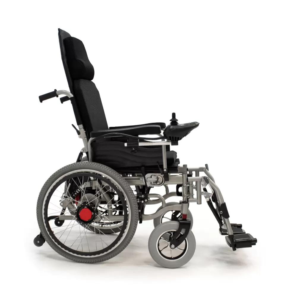 Кресло-коляска электрическая оборудована задним приводом, реализованным в виде двух независимых электромоторов на безугловом редукторном соединении с ведущими колёсами. Такой тип электропривода наиболее надёжен и прост в обслуживании, так как достигается максимальная простота механических соединений.