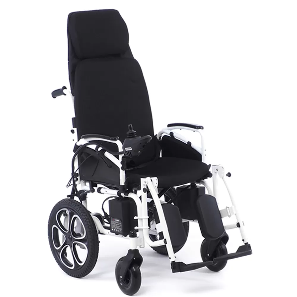 Электроприводное кресло-коляска с возможностью перевода сиденья из сидячего в горизонтальное положение для отдыха, или проведения процедур. Возможность без посторонней помощи в считанные секунды организовать полноценное лежачее место экономит силы и нервы больного за счёт отсутствия передислокаций в коляску и из неё.