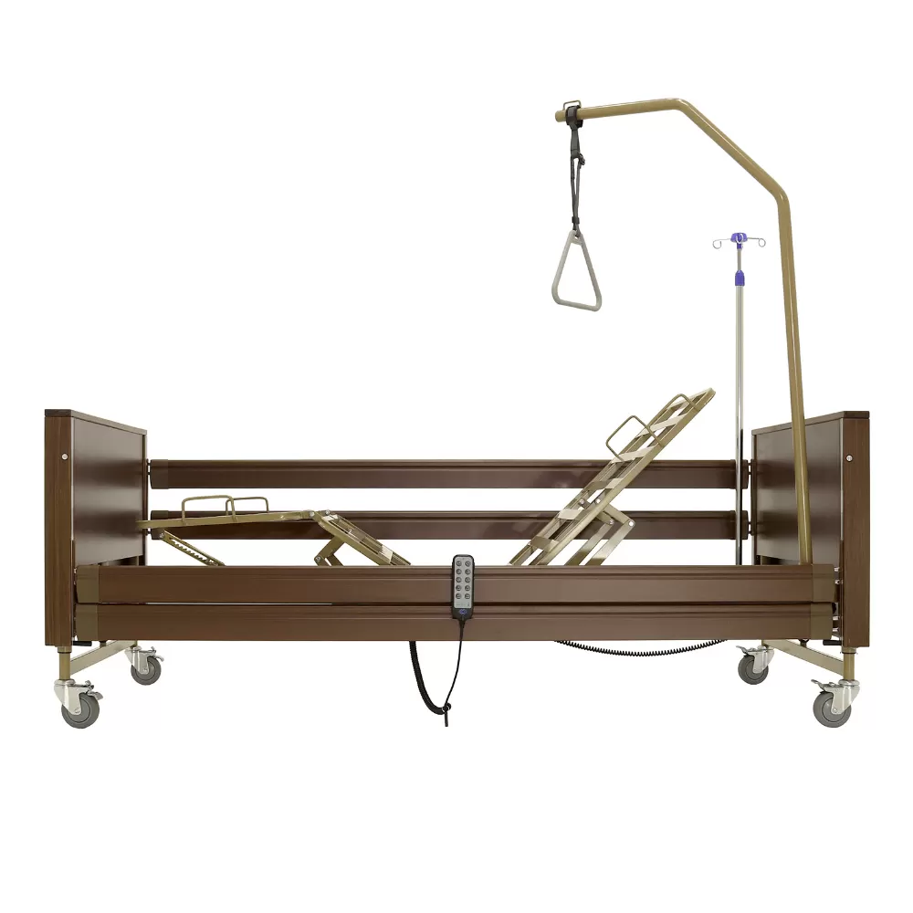 Кровать имеет электрический привод, благодаря которому можно изменять положение ее секций в зависимости от потребностей больного.Модель выполнена из качественных и надежных материалов, которые обладают высокой степенью устойчивости к регулярной эксплуатации. Кровать можно обрабатывать дезинфицирующими средствами, что позволит поддерживать нужный уровень гигиены.