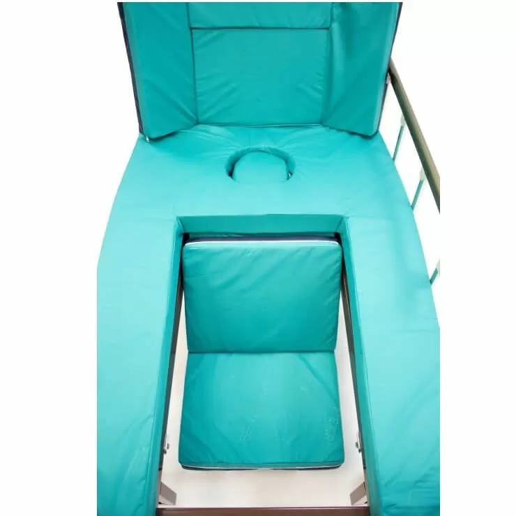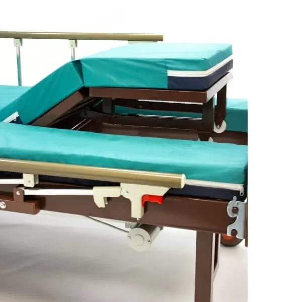 - Съёмный сегмент матраса в изголовье, и устанавливаемая на его место ванна для мытья головы, оборудованная сливным шлангом позволяет легко помыть голову пациенту.