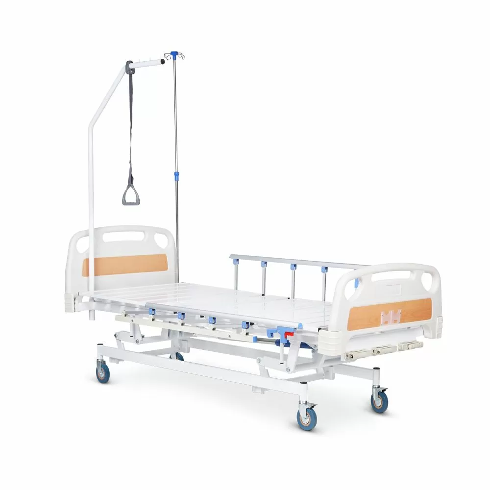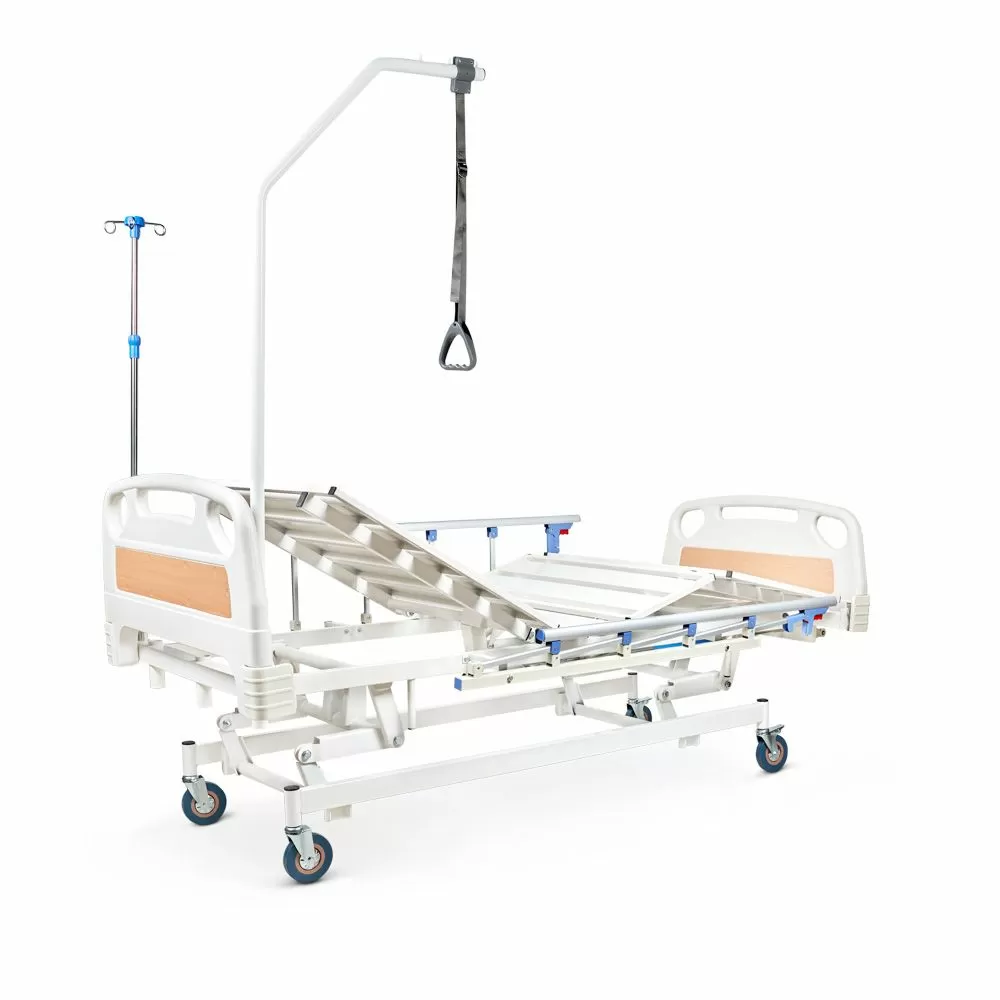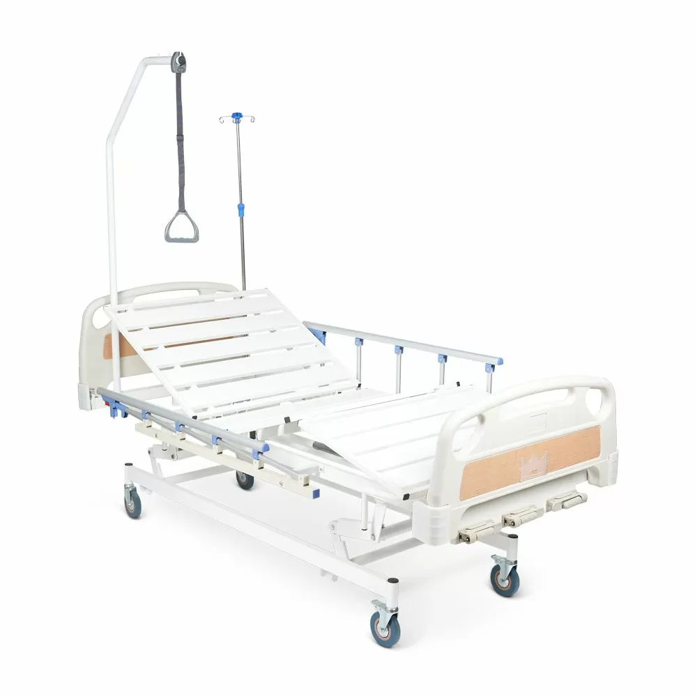 - Комплектация кровати включает устройство для подтягивания и стойку для капельниц. Для установки дополнительного оборудования предусмотрены дополнительные отверстия в раме.