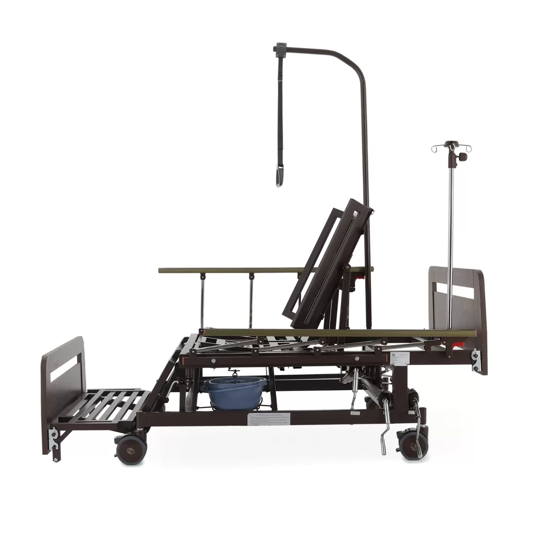 - туалетное устройство — медицинская кровать с туалетом позволяет пациенту избежать лишних движений при справлении естественных надобностей, что очень важно при тяжелых травмах и заболеваниях.