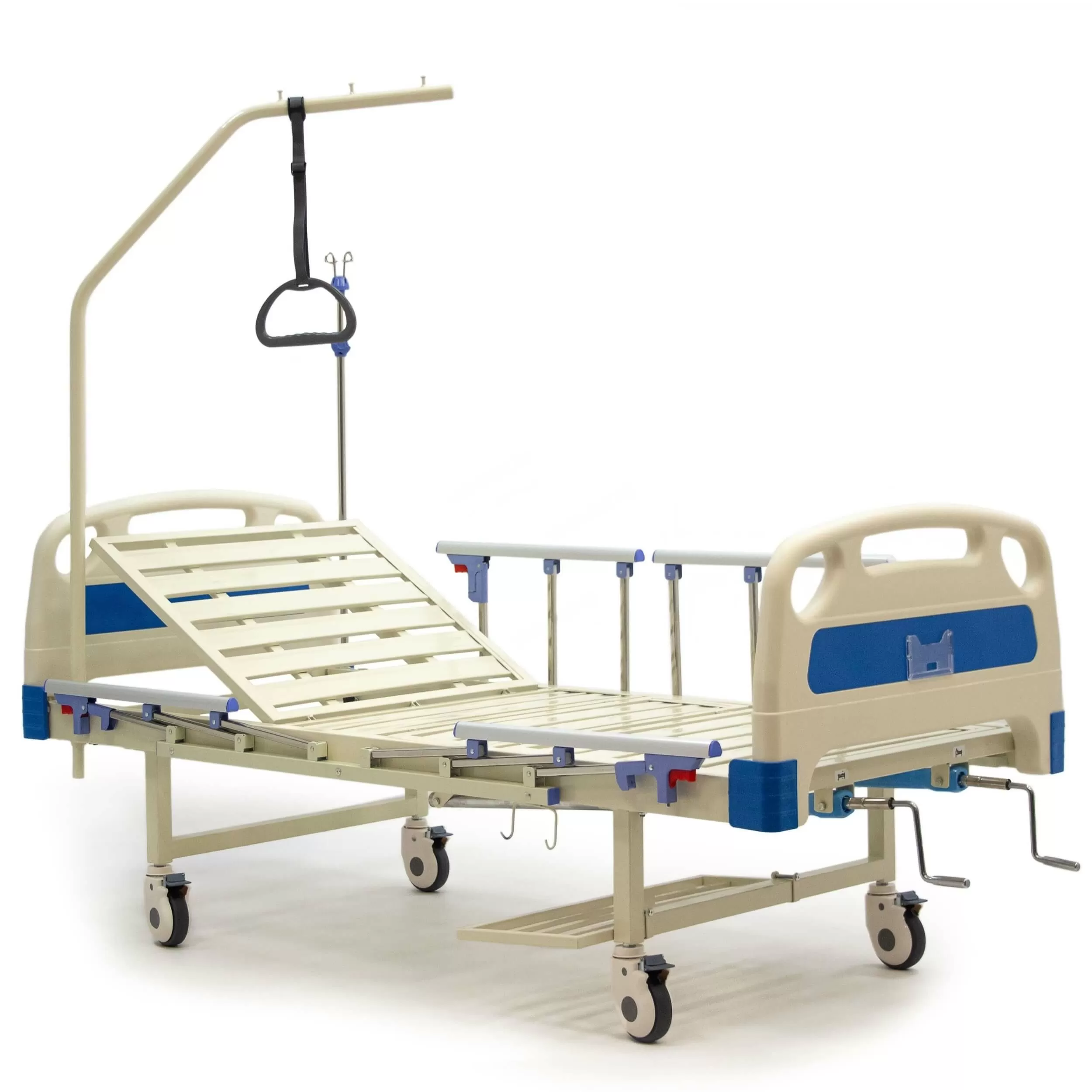 Выдвижные регуляторы положения ложа расположены в ножной части кровати, что позволяет персоналу легко регулировать положение ложа.