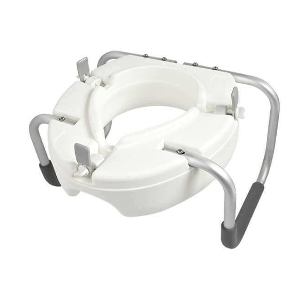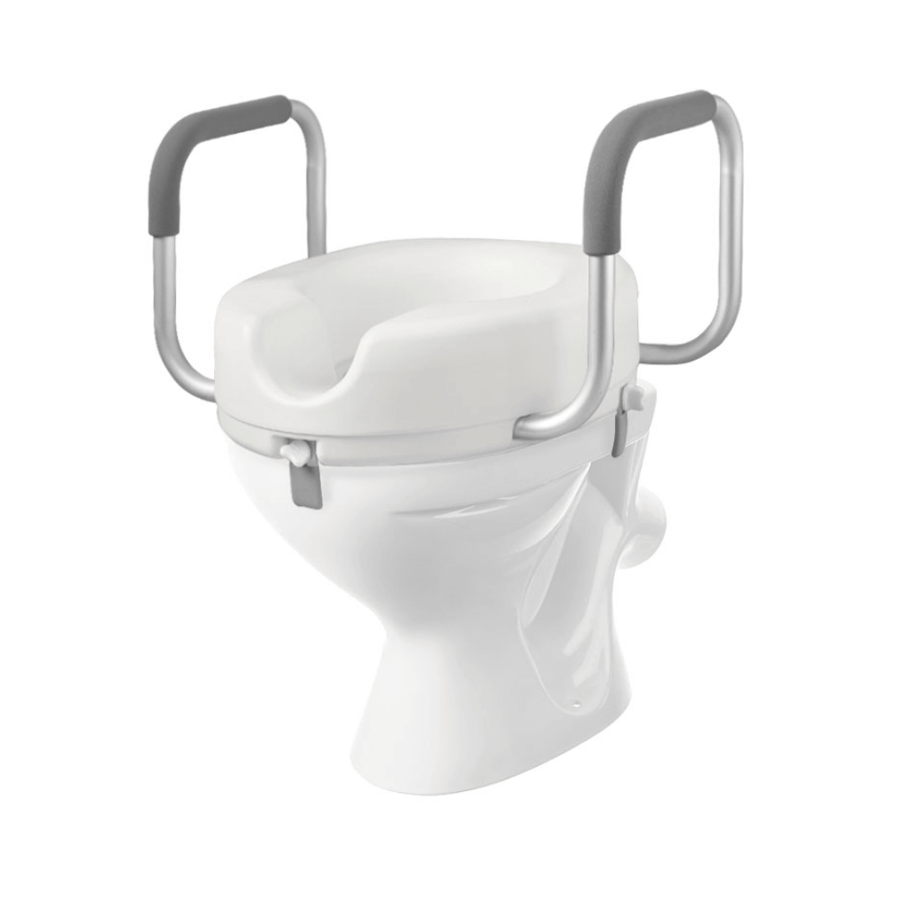 Подходит для унитаза любой формы, устанавливается и фиксируется при помощи трех креплений. Гигиенический пластик легко моется и не впитывает запахи. Большие широкие поручни покрыты мягкими накладками, приятными для соприкосновения с кожей.