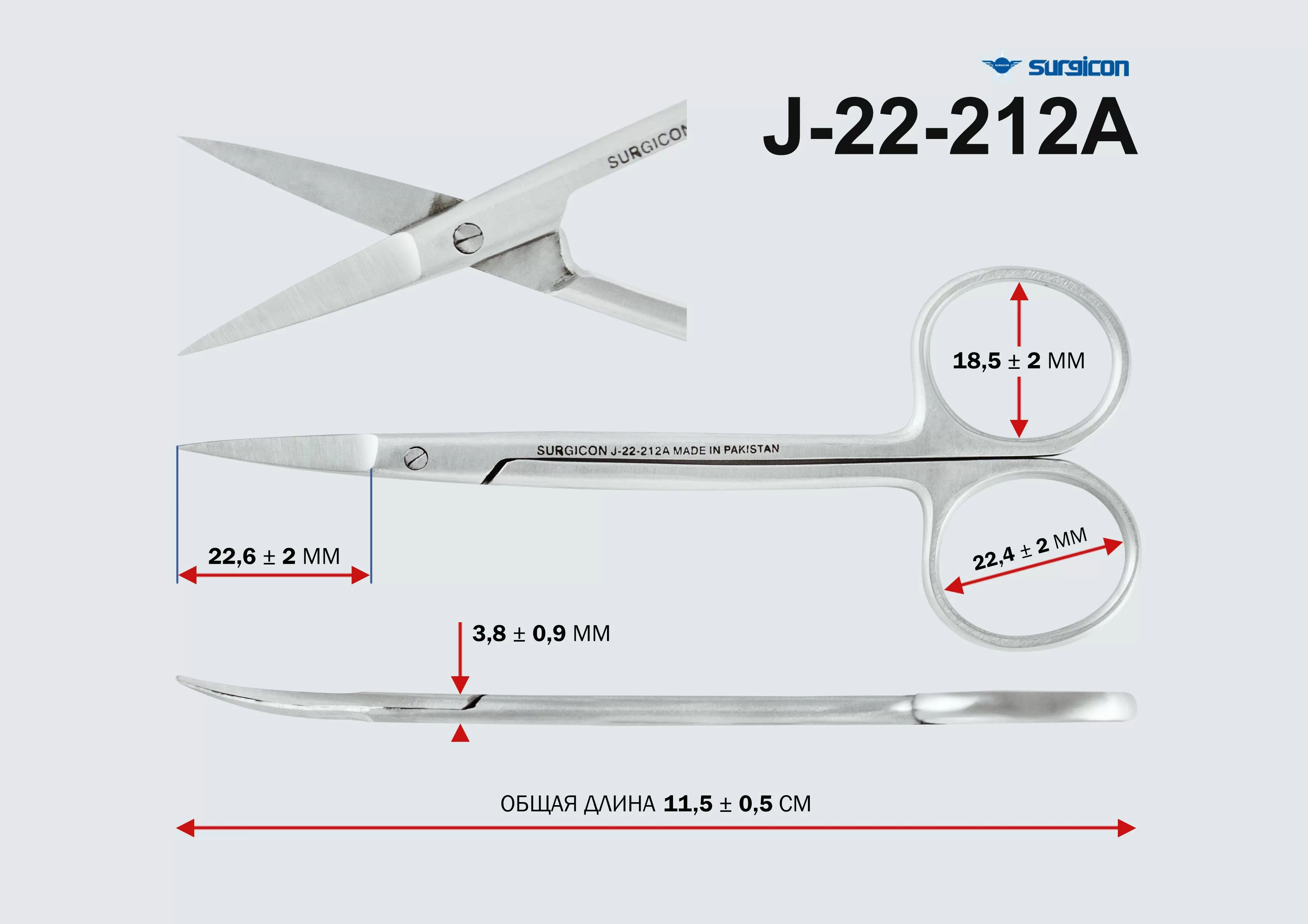 Двухлезвийный режущий медицинский инструмент с кольцевыми ручками для рассечения век и тканей глаза при операциях, рабочие части должны быть узкими остроконечными и вертикально изогнутыми