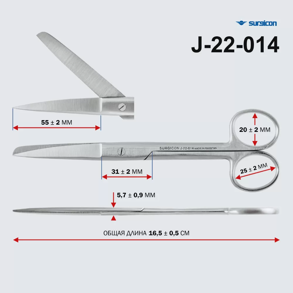 Ножницы c одним острым концом, прямые - медицинский многоразовый инструмент, использующиеся для разрезания биологических тканей во время открытых хирургических операций. Применяются преимущественно в ситуациях, когда для разреза вначале надо проколоть ткань.- Тип инструмента - режущий