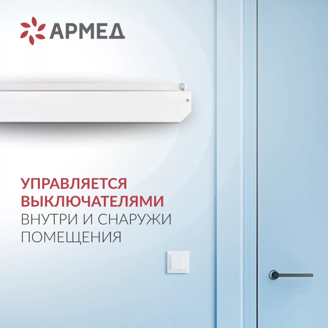 Модель комбинированного типа для эффективного обеззараживания воздуха и поверхностей в отсутствие людей. Прибор работает от двух бактерицидных ламп мощностью 30 Вт и предназначен в первую очередь для медицинских учреждений.Особенности